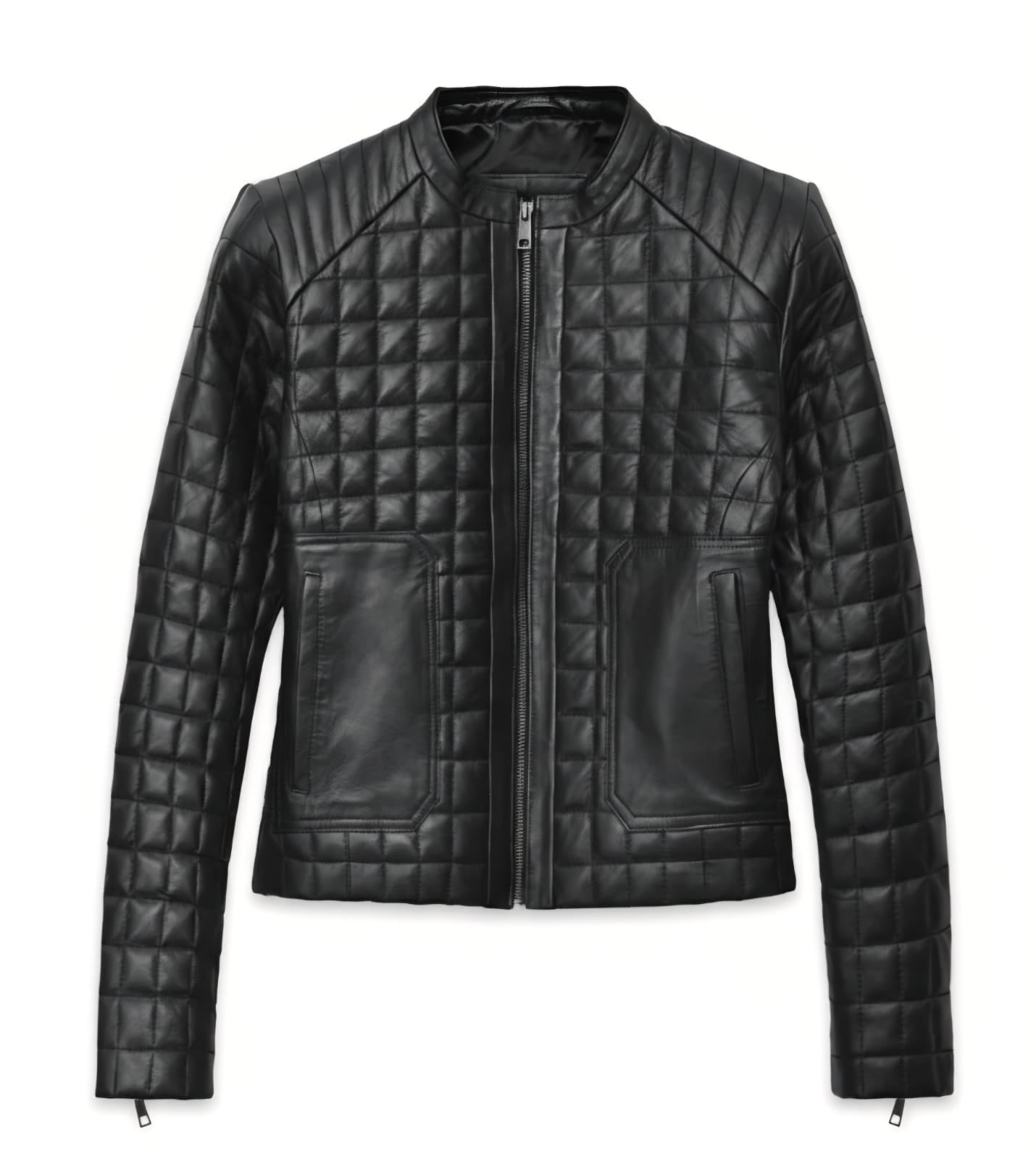 Power in every panel. Bomber Gal Leather Jacket redefines contemporary outerwear with an all-over quilted design that merges texture and precision. Crafted from genuine leather in a deep black tone, it features a straight zip-front closure, structured shoulders, and paneled pockets that balance utility with clean aesthetics.