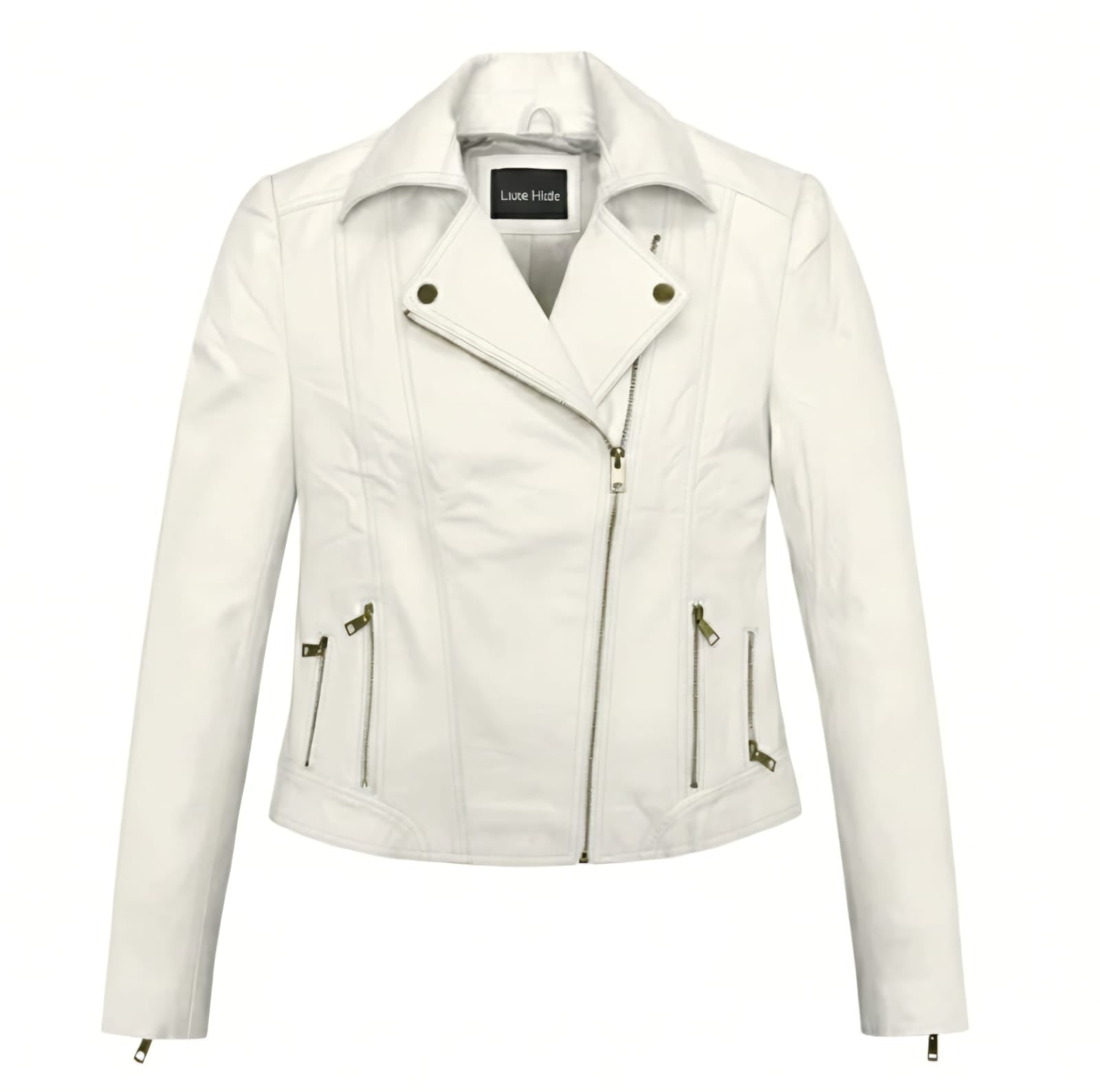 Ready to add that effortless, polished touch to your wardrobe? Our Mist White Leather Jacket promises a seamless blend of comfort and versatility.